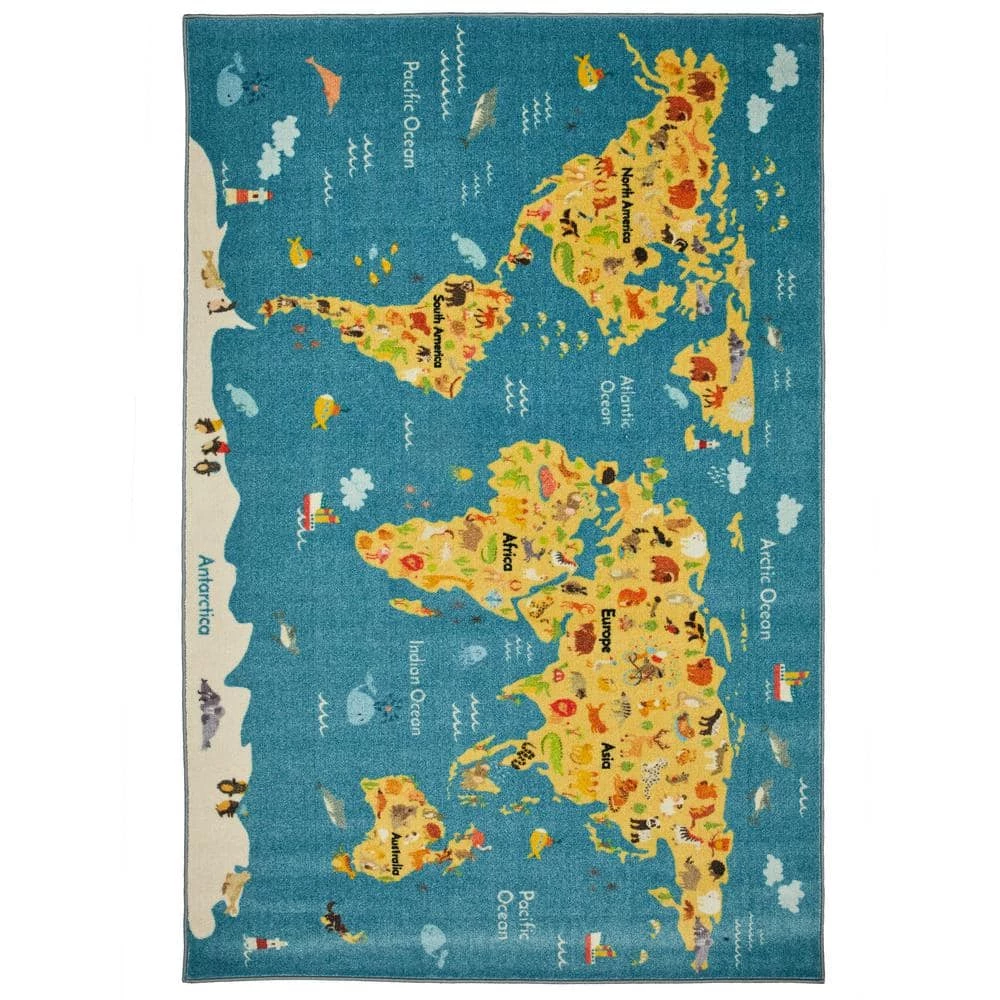 This vibrant, cut pile polyester rug features a colorful map of our beloved Mother Earth. Ideal for kids ages 1-100, it’s delightfully decorated with cute cartoon animals to represent each region of the world. Thoughtfully crafted in small batches utilizing Mohawk Homes exclusive Precision Dye Injected Printer, the Prismatic Collection is redefining printed rugs, literally one original design at a time. Designed on a plush EverStrand woven base, each style in this collection features superior strength stain resistance and a cozy soft touch. Consciously created with EverStrand yarn, Mohawk Homes exclusive premium recycled polyester produced from post-consumer plastic water bottles, this collection offers environmentally friendly options that are as easy on the eyes as they are the world around us.
