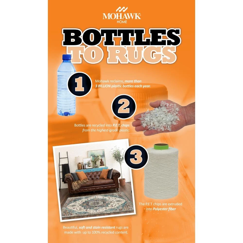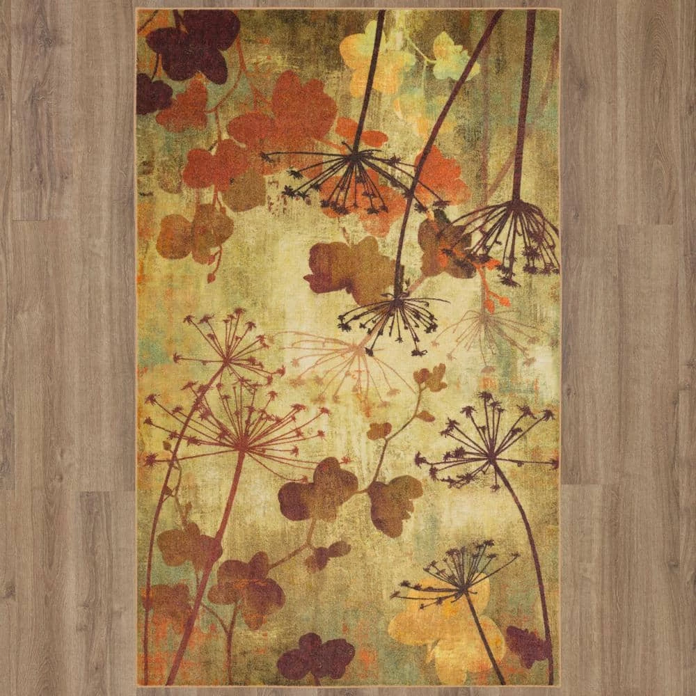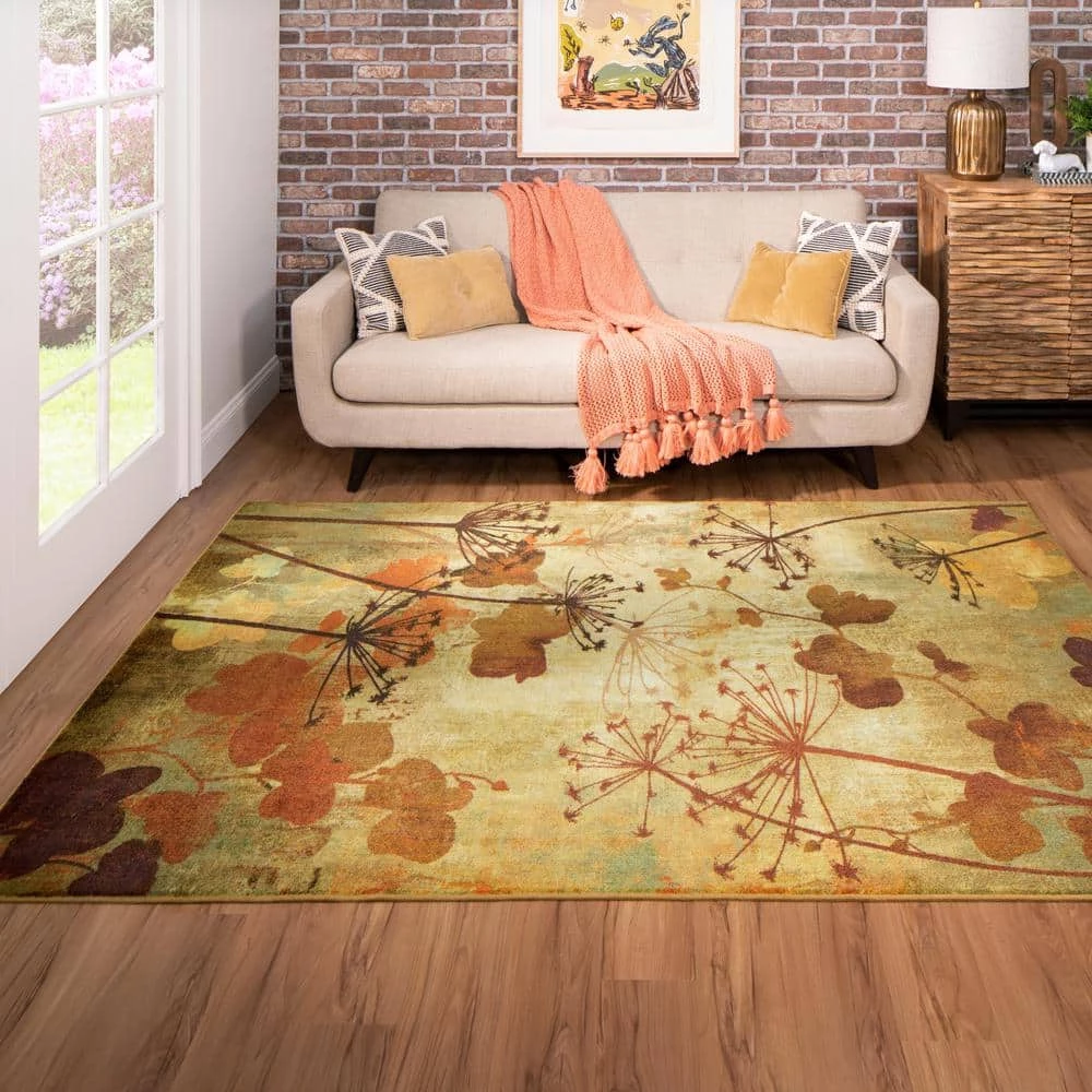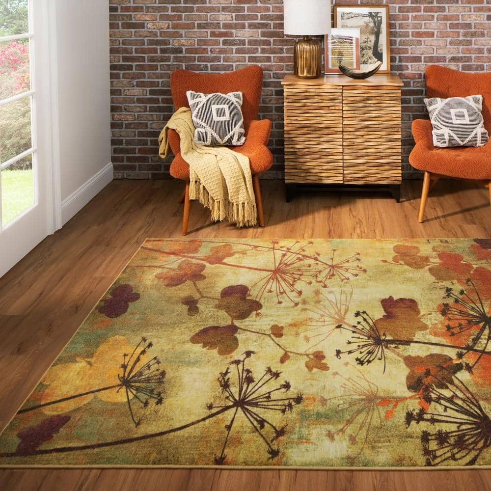 Silhouettes of dandelions and other fall foliage are featured in harvest inspired hues of burnt orange, sage green, chocolate brown, golden beige and neutral tan in Mohawk Homes Autumn Branches Area Rug. When it comes to color, the sky is no longer the limit with the infinite possibilities of Mohawk Homes revolutionary Prismatic Collection. Thoughtfully crafted in the U.S.A. in small batches utilizing Mohawk Homes exclusive Precision Dye Injected Printer, the Prismatic Collection is redefining printed rugs, literally one original design at a time. Each style in this collection features superior strength, stain resistance, and a cozy soft touch. Consciously created with Everstrand yarn, Mohawk Homes exclusive premium recycled polyester produced from post-consumer plastic water bottles, this collection offers environmentally friendly options that are as easy on the eyes as they are the world around us.