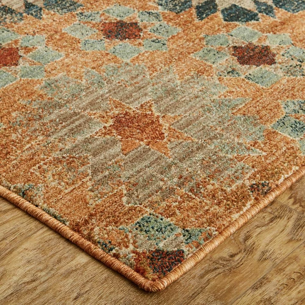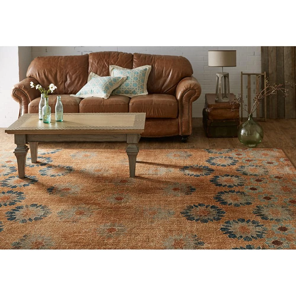 Influenced by dreamy scenes of wistfully floating through a flower field, the In Bloom Area Rug features a modern expression of a vintage floral motif. Designed in collaboration with the style obsessed team of Patina Vie, the In Bloom Area Rug showcases washes of spicy saffron orange cooled by accents of turquoise blue. Wonderfully woven with Mohawk Homes exclusive ecofriendly EverStrand yarn, this area rug is consciously created from up to 100% post-consumer content derived from recycled plastic bottles. A premium polyester yarn, EverStrand offers a thick, sumptuous softness, inherent stain resistance and vivid color clarity. The stately styles and traditional woven area rugs of Mohawk’s Studio Collection exude eternal elegance in designer color palettes perfected to pair beautifully with the myriad of home interior trends today. The Mohawk Studio Collection is consciously crafted with Mohawk’s exclusive ecofriendly EverStrand, a premium recycled polyester yarn. As easy on the eyes as the environment around us, EverStrand yarn is created from recycled post-consumer plastic water bottles. While EverStrand is renowned for sensuous softness, this silky fiber also offers superior strength stain resistance, dependable durability and an illustrious color clarity. Refreshing and radiant, colors come to life through a subtle light catching sheen that is inherent to this luxurious yarn.