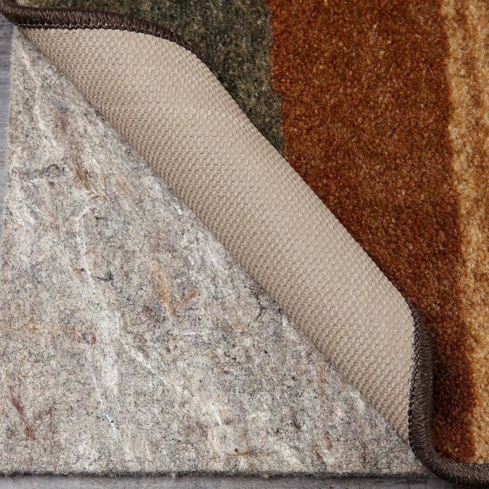 From contemporary to classic, the New Wave Collection has a design to tempt every taste! Each rug in this collection was created with our advanced print technology for the truest color clarity and refined details honed to perfection. A mid-weight cut pile base is thoughtfully crafted of premium nylon yarn, packing a punch with reliable stain protection and resistance to everyday wear-and-tear. The durable nylon styles of the New Wave Collection are ideal for almost any space, including even high traffic areas. Rendered in a rich earth tone inspired palette, Mohawk Home’s Mayan Sunset Area Rug in Sierra features modern abstract stripes in vibrant hues of gold, brown, blue, red and green. This silky soft area rug is available in runners, scatters, 5×8 area rugs, 8×10 area rugs, and other popular sizes, making it ideal for entryways, bedrooms, offices, kitchens, living rooms, dining areas and more. Flawlessly finished with advanced technology, this style features brilliant color clarity and richly defined details. This family friendly design is created with a premium synthetic yarn that provides proven stain resistance power and reliable resistance to daily wear and tear. Durable and designed to be kid and pet friendly, this accent rug is suitable for high traffic areas. Keep your new rug and the flooring beneath looking their best with an essential all surface, earth conscious rug pad, crafted of 100% recycled fibers and certified Green Label Plus by The Carpet & Rug Institute!