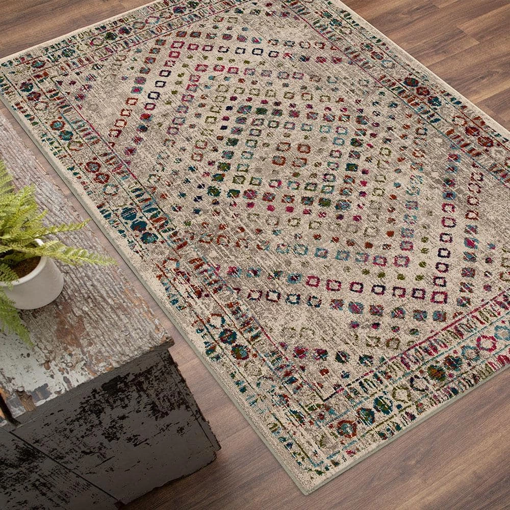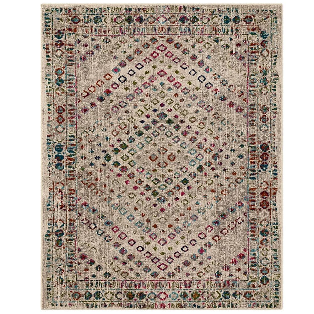 Soft shades of green intermix with modern multicolor hues of purple, blue, red and orange in the contemporary geometric inspired design of the Murdoch Area Rug, size 8 ft.x 10 ft. This area rug is ideal for living rooms, dining areas, offices, bedrooms and more. The high-quality woven design is rendered over a plush canvas created with soft and stain resistant synthetic yarn. Vacuum regularly and spot clean as needed with a solution of water and mild detergent to maintain the lasting luxury of this sought-after style.