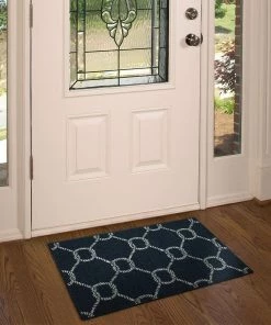 Coastal Rope Lattice Navy 1 ft. 8 in. x 2 ft. 10 in. Machine Washable Area Rug by Mohawk Home