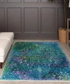 Sand Dollar Aqua 1 ft. 8 in. x 2 ft. 10 in. Medallion Machine Washable Area Rug by Mohawk Home
