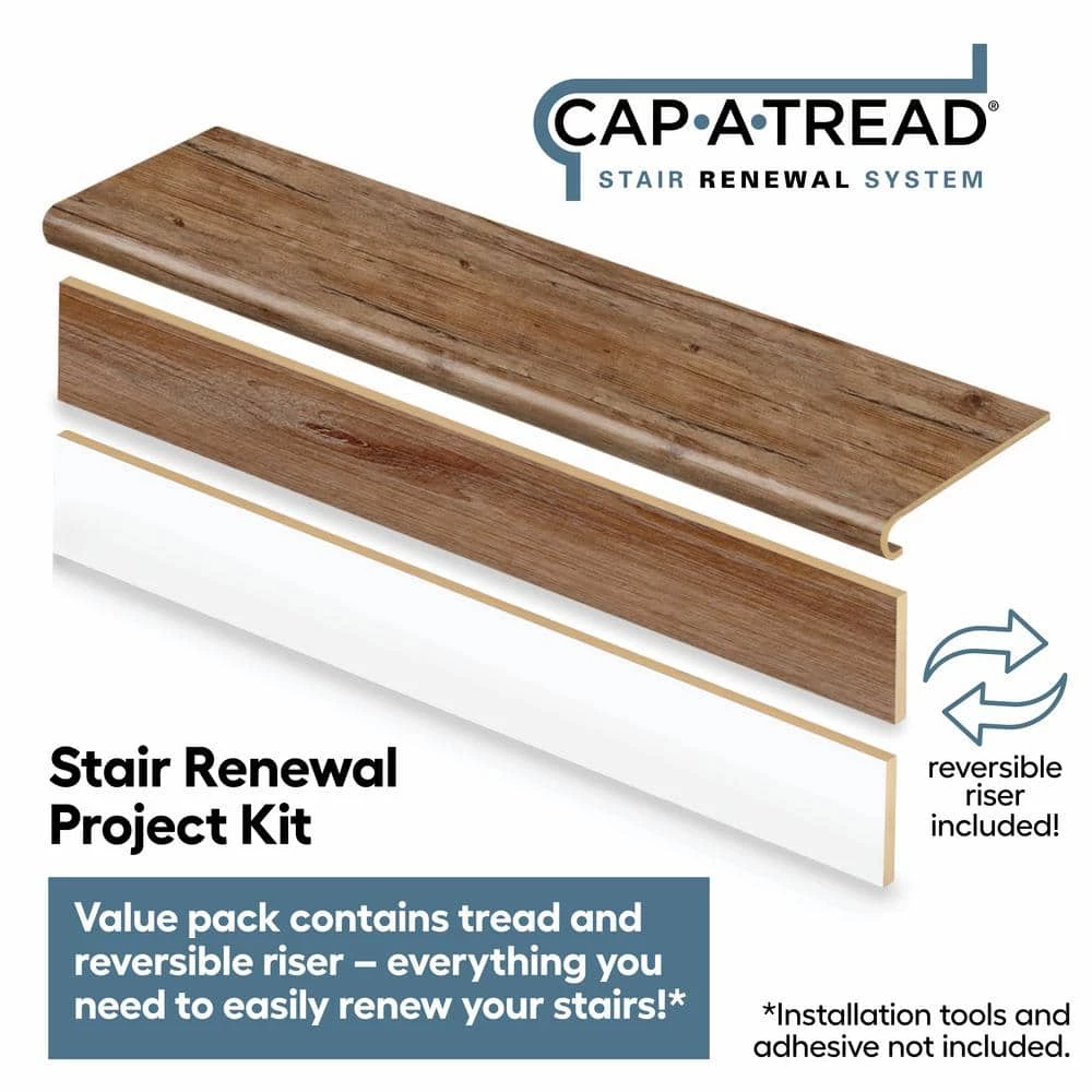 - New; stair renewal project kit – value pack contains tread and reversible riser – everything you need to easily renew your stairs; kit includes 1 tread and 1 reversible riser; installation tools and adhesive not included
